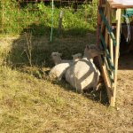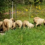 Da wir immer nach den Eisheiligen scheren, die Schafe aber 2012 schon Anfang Mai ausgetrieben haben, sind die Schafe auf manchen Fotos noch "wohlverpackt".