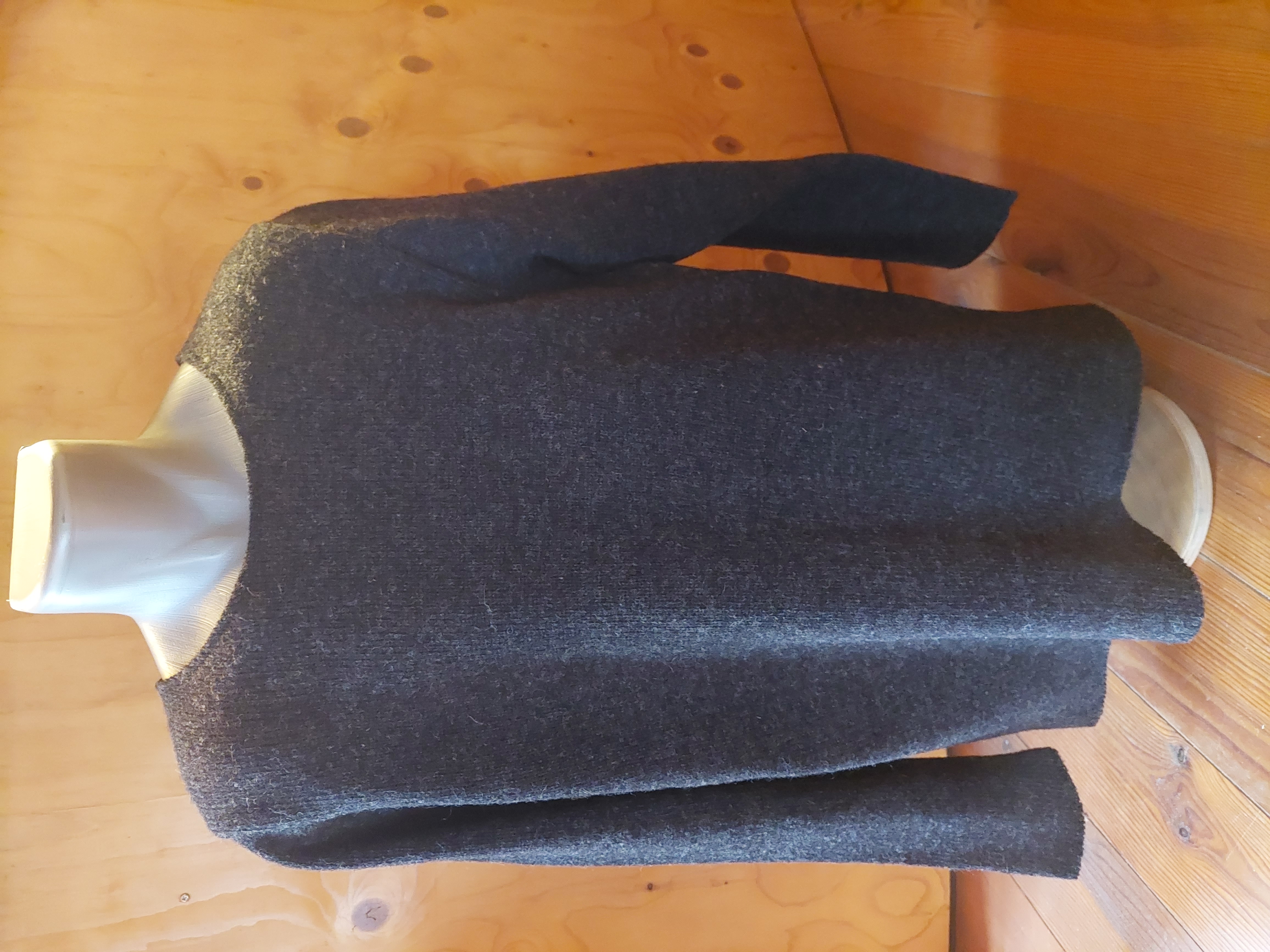Warmer Troyer aus schwerer Walkware, mit Reißverschluß, Eingrifftaschen, Kordeldurchzug und zweifarbigem Kragen (innen anthrazit) oder anthrazit mit fuchsfarbenem Innenkragen